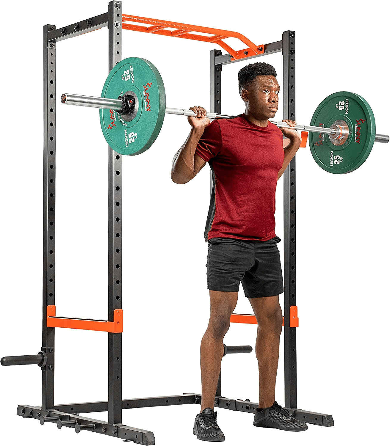 - I use this Sunny Health and Fitness squat rack because it was the right price and the right function.